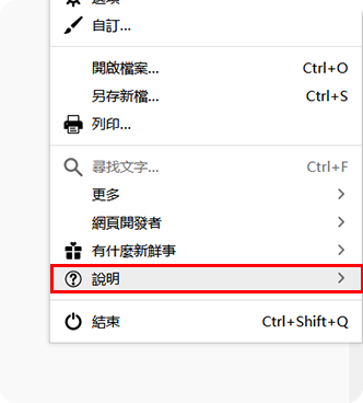 如要查看 Internet Explorer 的版本,請按一下[說明],然後選取[關於Internet Explorer]。如果沒看到[說明]選單,請按下Alt鍵,即可顯示選單列。