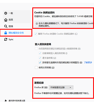 4. 點選右側的[清除歷史紀錄]及[清除數據]。