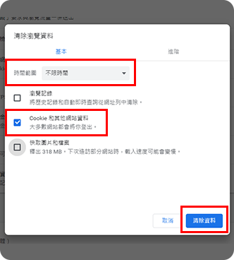 如果仍無法解決問題,建議您接著清除瀏覽器的Cookie。